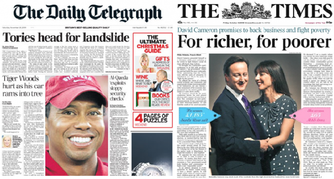 Dans le même temps, de nombreux quotidiens ont changé leur fusil d’épaule et soutiennent les conservateurs. Au premier rang desquels on trouve le Sun et le Times, qui appartiennent tous deux à la News Corp. Les titres de Murdoch ont abandonné leur soutien traditionnel aux travaillistes, permettant ainsi aux conservateurs d’augmenter considérablement leur exposition médiatique. Le soutien du Telegraph, de l’Express et du Daily Mail aux conservateurs est inchangé.A la suite de la gaffe de Gordon Brown, qui a traité une sympathisante de ‘bigote’, le Guardian a également déserté le camp sortant. Dans son dernier éditorial, le journal affirmait que le moment du parti Libéral-Démocrate était venu, le soutenant du même coup.