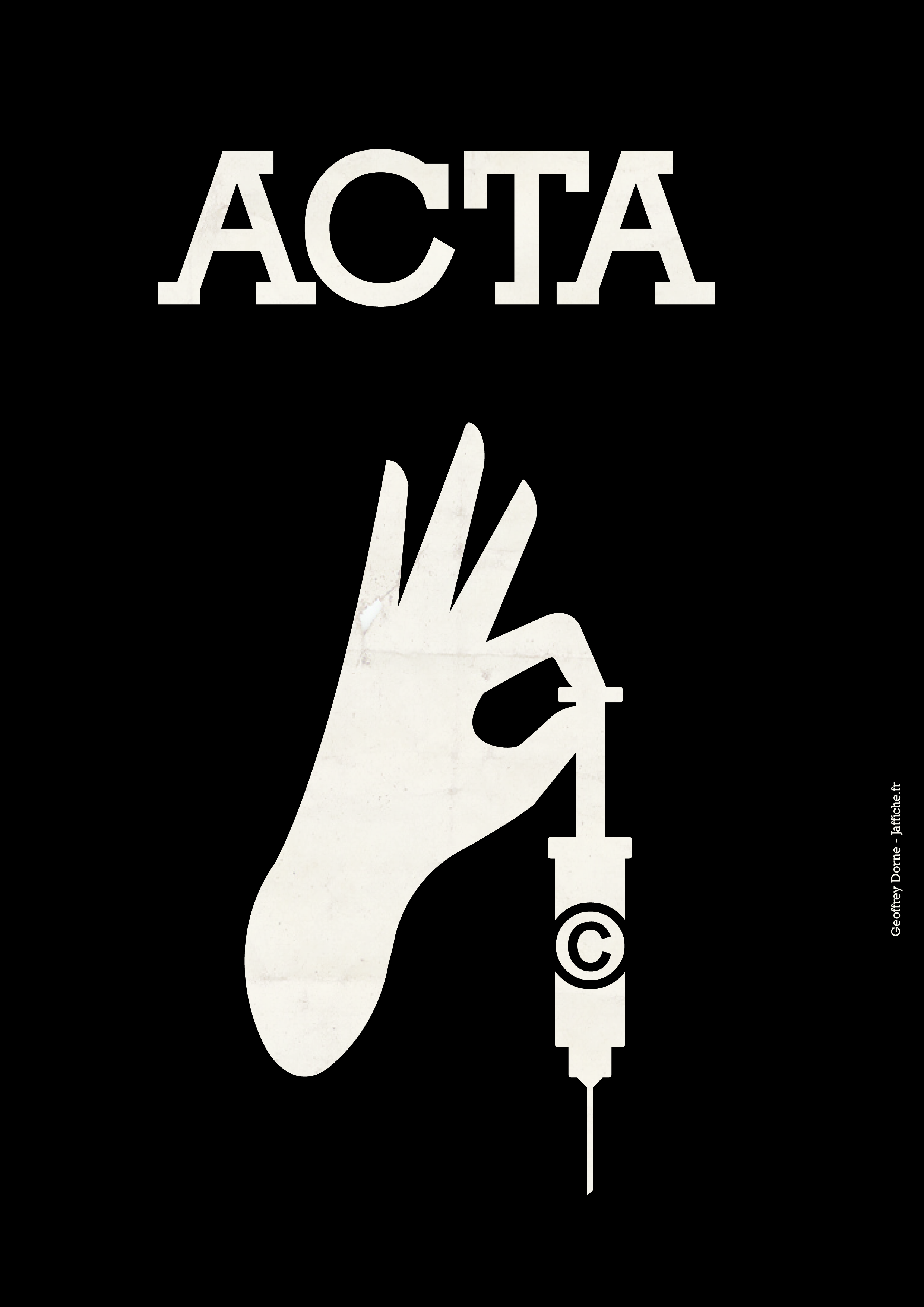 Téléchargez la très belle affiche réalisée par Geoffrey Dorne pour cette une sur ACTA à cette adresse !