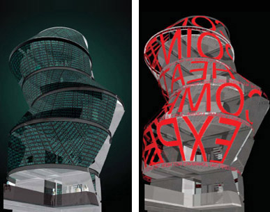 À quoi ressemblerait cette « architecture en streaming » ? L’exemple du N Building, de l’agence tokyoïte Terada design, exprime de manière caricaturale cette perspective d’une « architecture bavarde » : la façade est un QR code géant ; filmez ce code-barre 2D avec votre mobile et vous pourrez visionner les promos du magasin ou les tweets géolocalisés des chalands.