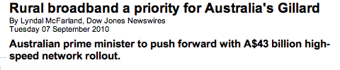 Les travaillistes emmenées par Julia Gillard ont en effet remporté les récentes élections face aux libéraux conservateurs qui dans leur programme ne proposaient que du sans fil pour les sous-hommes des campagnes australiennes…