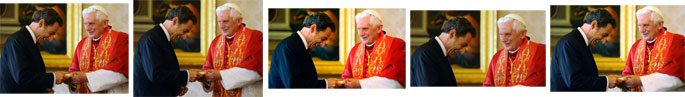 Rien de tel que l’examen d’un exemple pour préciser les choses. L’actualité me fournit le cas de la visite de Nicolas Sarkozy au Vatican, le 8 octobre 2010. Quoi de mieux qu’une entrevue protocolaire, phénomène ponctuel à la scénographie établie, dont la raison d’être est précisément de créer des images?