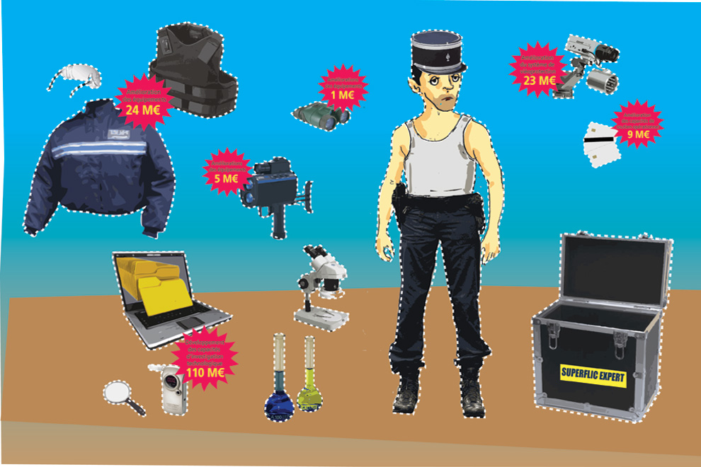 Les services de police technique et scientifiques (les fameux “experts“) ne sont pas oubliés : “kits salivaires” de dépistage des stupéfiants, “éthylotests électroniques“, développement de systèmes IMSI catcher (fausses bornes GSM qui permettent d’écouter et de localiser en temps réel les téléphones portables), “loupes rétro-éclairantes” et “microscopes stéréoscopiques“, création d’un fichier de rapprochement et d’analyse criminelle… 110 millions d’euros seront consacrés au développement des capacités d’investigation technologique, de lutte contre la cybercriminalité ou de lutte anti-terroriste.