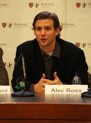 En compagnie d’un petit aréopage de journalistes et de chercheurs, nous avons passé une agréable partie d’après-midi avec Alec J. Ross [en], le conseiller principal de la secrétaire d’État américaine Hillary Clinton [en] en matière de technologie et d’innovation.