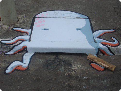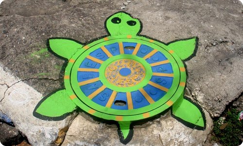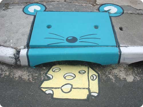 Une bouche d'égout, quoi de plus laid ? Il suffit du coup de peinture talentueux de street artistes pour en faire des objets ludiques égayant la rue.