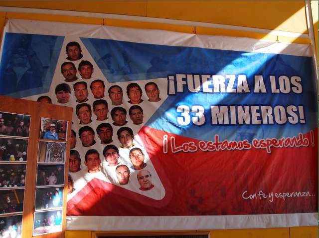 C’est dans cette ville minière qu’habitent la plupart des trente-trois mineurs qui, le 5 août 2010, avaient été pris au piège à 700 mètres au fond d’une mine d’or et de cuivre, à cinquante kilomètres de Copiapo. L’histoire des « 33 » de la mine San José, qui ont réussi à survivre dix semaines dans cette prison souterraine, avait pris des allures de télé réalité.