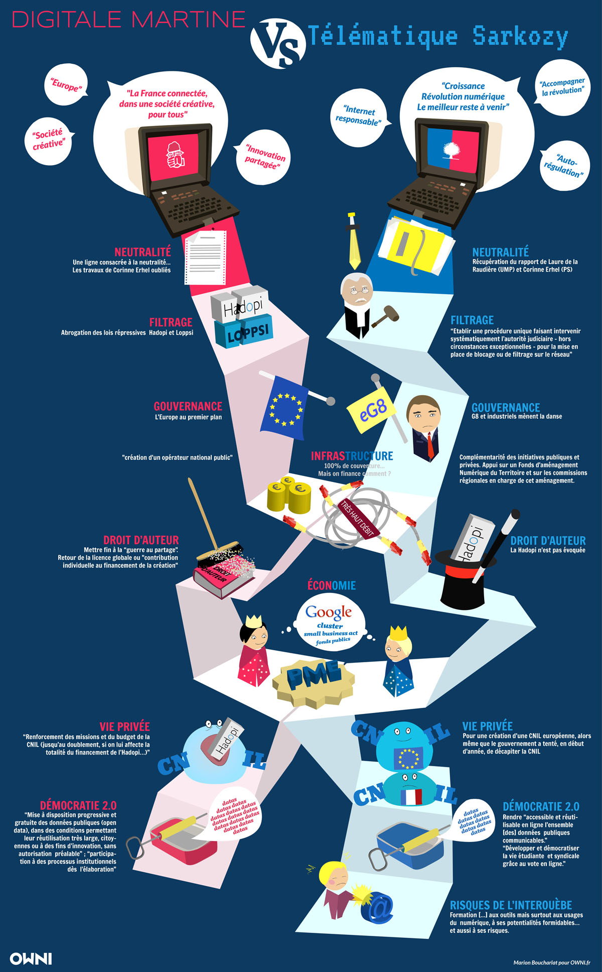 OWNI a décortiqué le programme des deux principaux partis politiques français concernant le numérique. Synthèse sous forme de joli poster :)