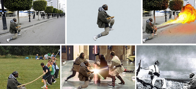 Qu’il s’agisse de la création de fausses bandes annonces sur YouTube, de remixes satiriques à caractère politique, des threads anonymes de 4chan16 ou de la circulation virale des mèmes (jeu appropriable de décontextualisation de motif) dont les traces seront effacées après usage, les conditions de l’appropriabilité numérique ne s’autorisent que d’expédients et de tolérances fragiles : la protection de l’anonymat ou de l’expression collective, la nature publicitaire des contenus, la volatilité ou l’invisibilité des publications, la méconnaissance de la règle, et surtout les espaces du jeu, de la satire ou du second degré, qui, comme autrefois le temps du Carnaval, sont des espaces sociaux de l’exception et de la transgression tolérée… La créativité du remix s’installe dans la zone grise formée par les lacunes du droit, des oublis du contrôle ou de la dimension ludique. Mais ces conditions font du web l’un des rares espaces publics où l’appropriation collective est possible, communément admise, voire encouragée.