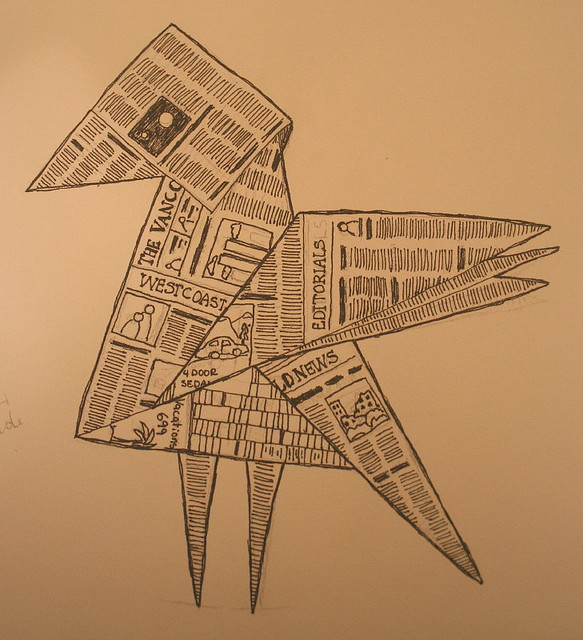 Recherche d’images par Lionel Maurel via Flickr : Newspaper Bird. Par eebeejay. CC-BY-NC ;Newspaper Deer. Par liquidnight.CC-BY-NC-SA ; Newspaper Boat. Par MarcelGermain. CC-BY-NC-ND