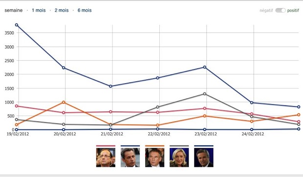 Le Figaro a lancé spécialement pour la campagne 2012 un baromètre des opinions exprimées sur Internet à propos des candidats à la présidentielle, Le Scan.
