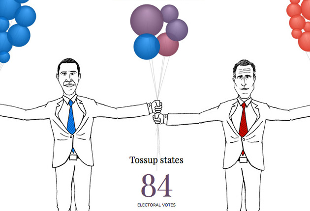 Note : Les visualisations liées au futur scrutin outre-atlantique sont bien évidemment pléthores depuis quelques semaines et pour encore quelques unes d’ici au 6 novembre. Le Guardian et Real Clear Politics proposent ici une approche graphique ludique, en mode ballons-fête-foraine (coucou la politique spectacle), pour visualiser les derniers sondages état par état. Ça change des cartes et ça fait le job, merci à eux.