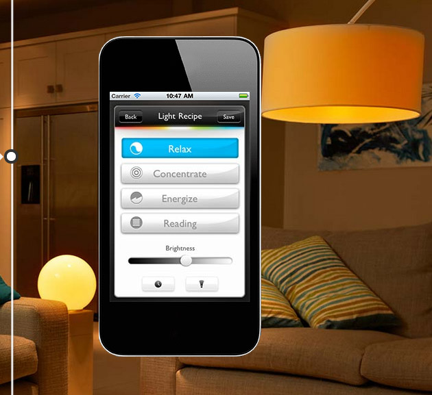 Hue, (prononcez “hiou”) est donc le nom de cette ampoule  soutenue par un marketing assez imposant. Les designers s’intéressent en général à l’expérience lumineuse, à l’objet lumineux dans sa globalité, à la forme de la lampe, mais rarement à son contenu : la lumière – ou plus précisément dans notre cas – l’ampoule. Philips a donc souhaité faire évoluer ce symbole de création avec la sortie de Hue qui est présentée comme “la prochaine étape dans l’éclairage des foyers” ou encore comme “le premier système d’éclairage domestique connecté à Internet”. Une révolution domotique ?